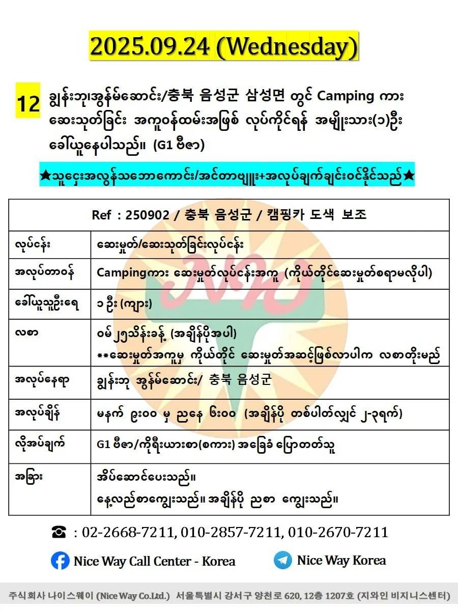 ▶️ အလုပ်တည်နေရာ-ချွန်းဘု၊အွန်မ်ဆောင်း/충북 음성군 삼성면
