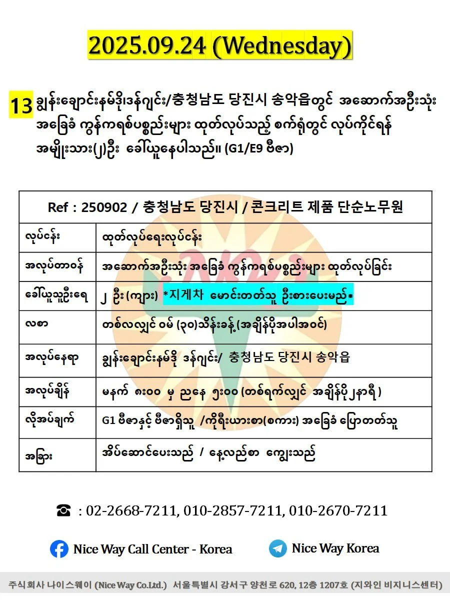 Ref : 250902 / 충청남도 당진시 / 콘크리트 제품 단순노무원