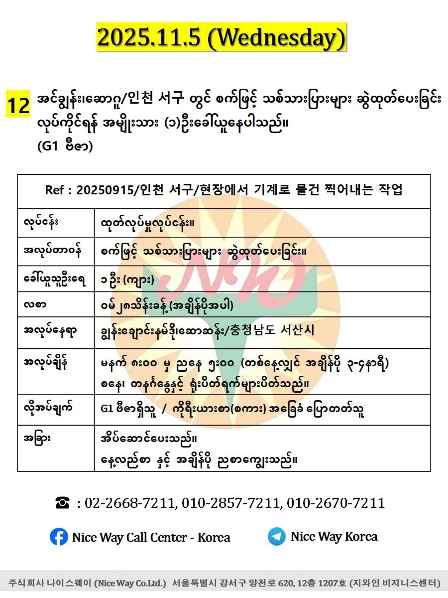 ㅇအလုပ်တည်နေရာ- အင်ချွန်း၊ဆောဂူ/인천 서구