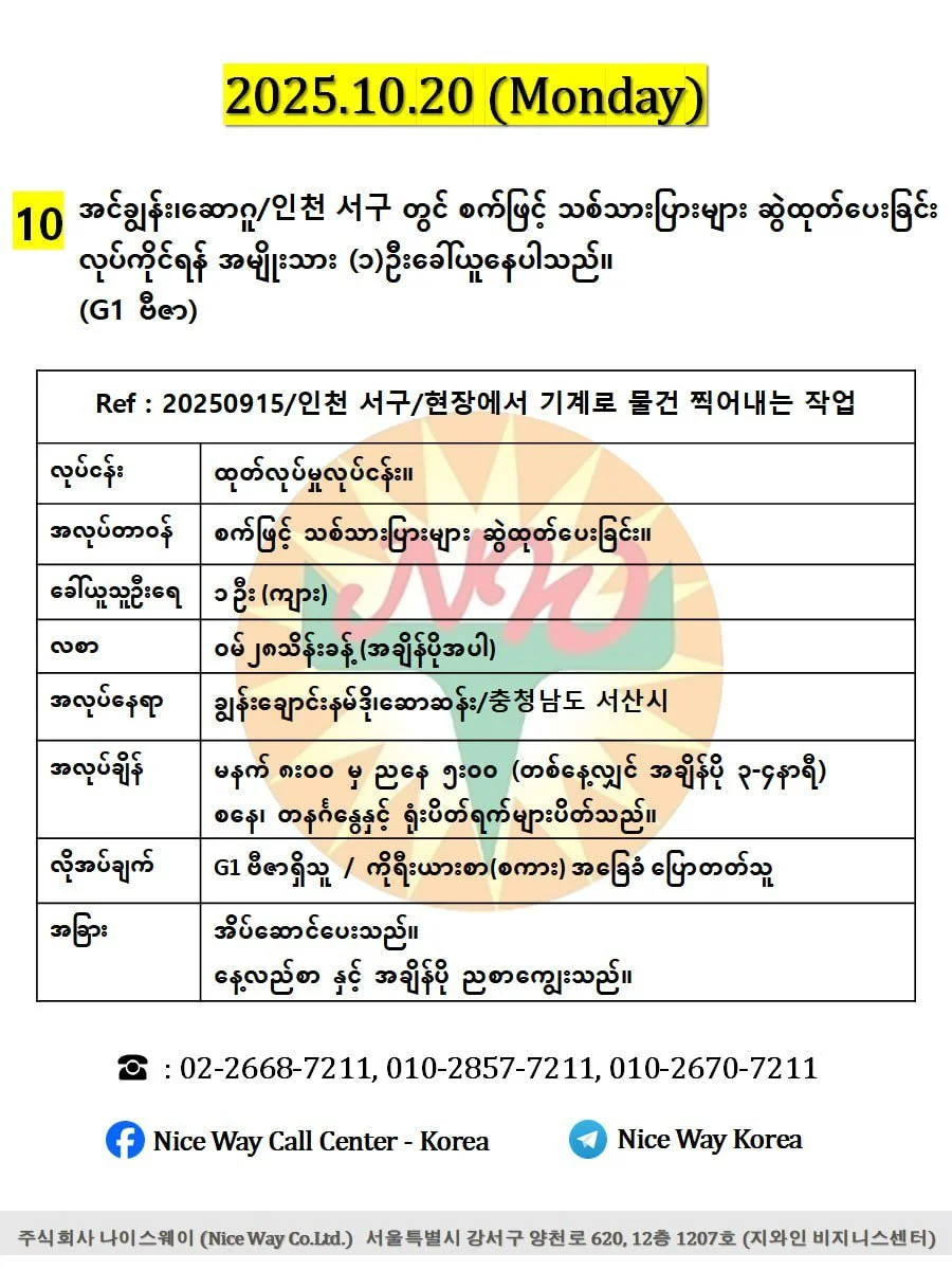 ㅇအလုပ်တည်နေရာ- အင်ချွန်း၊ဆောဂူ/인천 서구