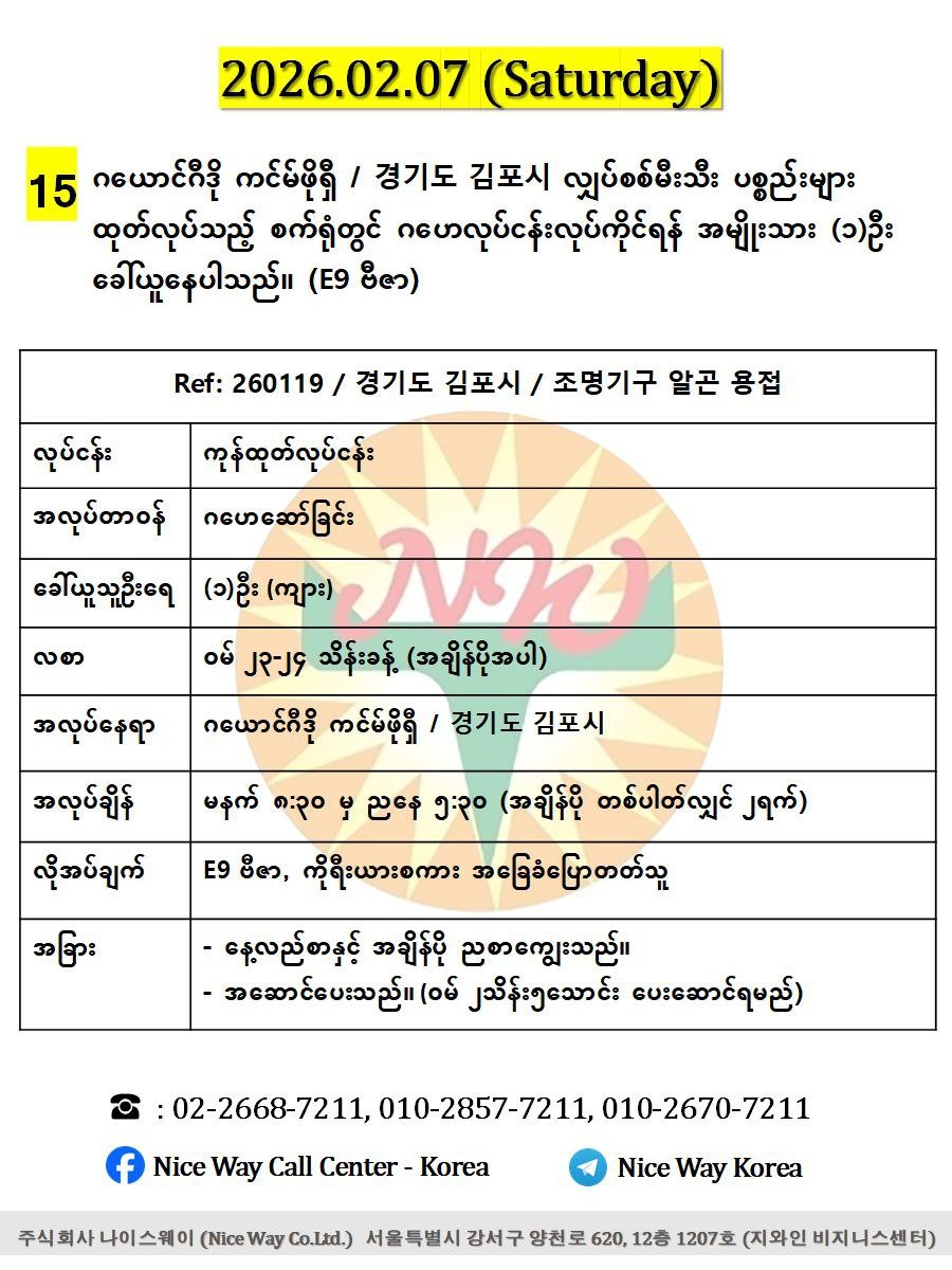 ▶️အလုပ်တည်နေရာ: ဂယောင်ဂီဒို ကင်မ်ဖိုရှီ / 경기도 김포시
